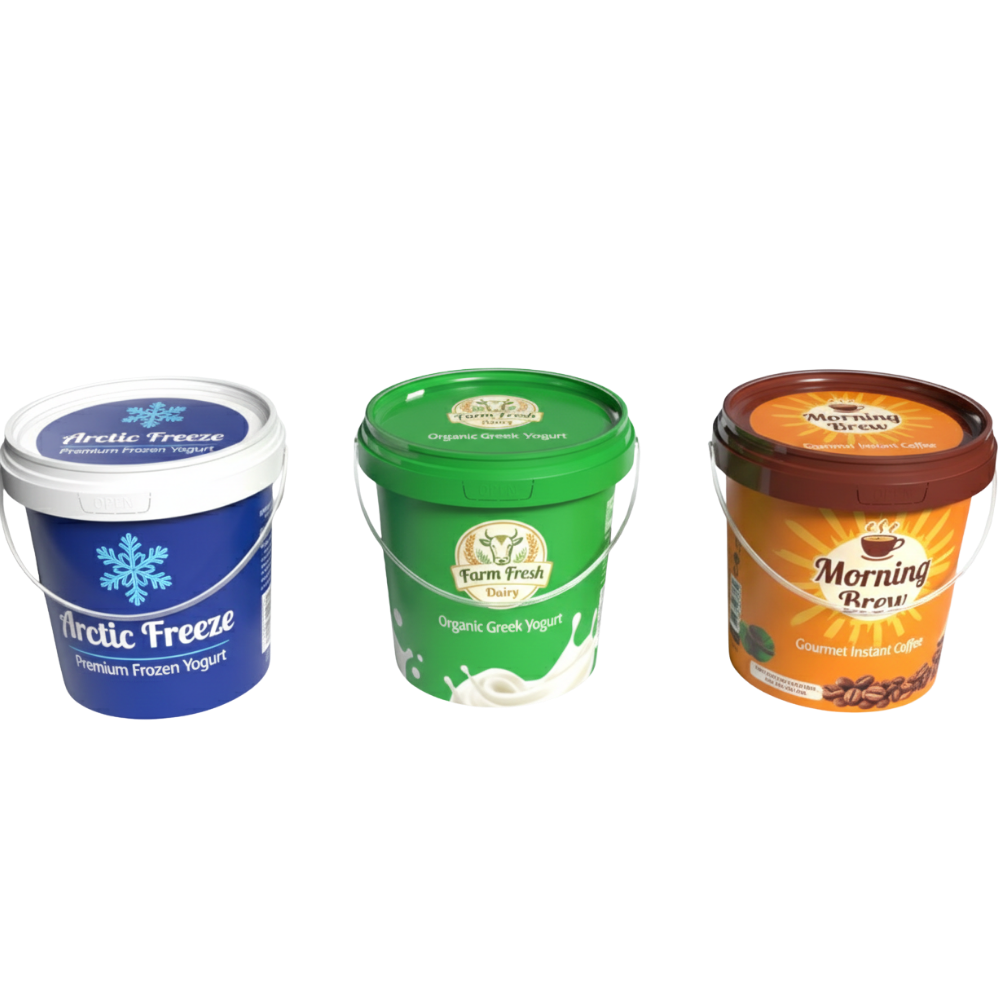 The DYK997 yogurt bucket is available with an IML (In-Mold Labeling) printing option, allowing your branding to be applied directly onto the bucket. This provides a high-quality, professional shelf appearance, with graphics that are resistant to peeling, scratching, and moisture.